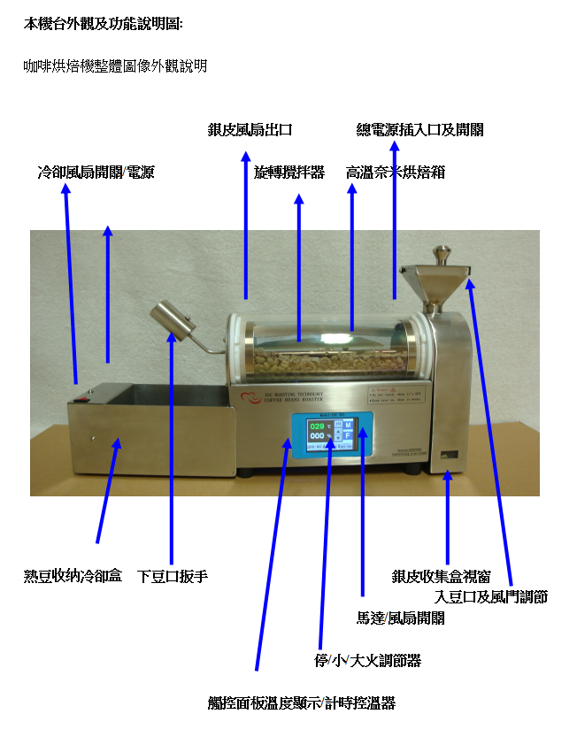 效率. 內部採用圓形遠紅外線烘焙, 咖啡生豆內外部受熱最均勻..